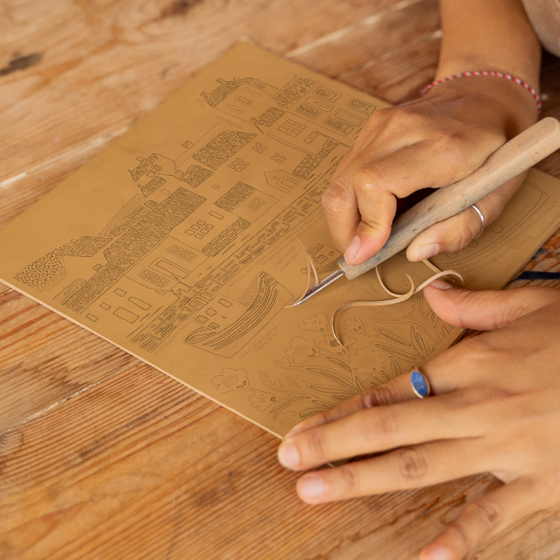 Our stunning lino-print style artwork captures the charm and vibrancy of Brixham Harbour, Devon, a highlight of our UK Picturesque Harbours and Beaches collection. This piece transports you to the serene coastal beauty with its striking depiction of quaint cottages and bustling boats set against the cool blues of the sea. Each building, with its detailed windows and roofs, speaks of history and tradition, while the array of fishing boats bobbing in the harbour reflects the lively maritime activity. The foreground is adorned with delicate floral designs, adding a touch of natural beauty. Available in framed prints, choose between black or white frames in 36cm or 46cm square sizes. For those who love creative pursuits, a unique digital option is also available for purchase, allowing you to download the source images, line drawings, and sketches to craft your own lino print masterpiece.