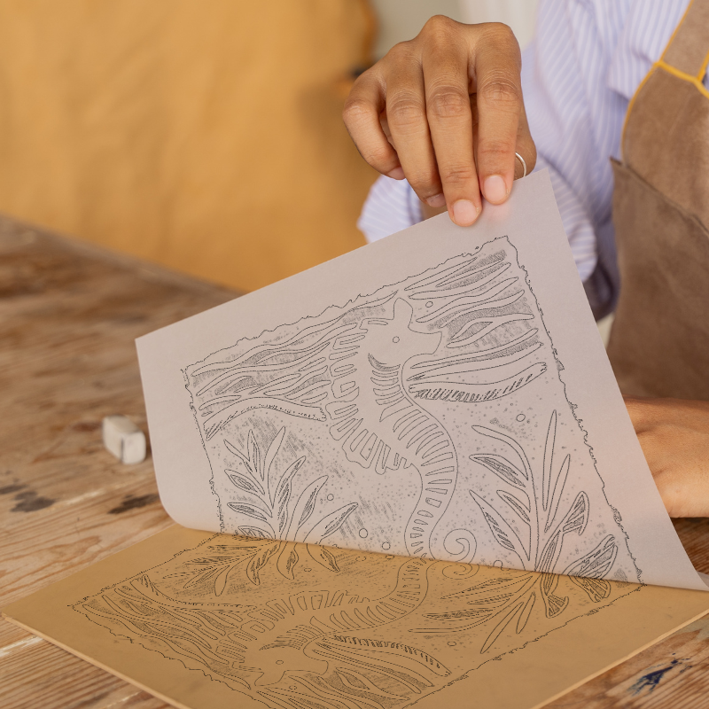 Dive into the serene underwater world with this exquisite lino-print style artwork of a seahorse nestled within swirling seaweed. This piece masterfully captures the delicate and graceful essence of ocean life. The seahorse, adorned with vibrant orange hues, contrasts beautifully against a deep navy backdrop, creating an intriguing and striking visual experience. The flowing seaweed and gentle bubbles suggest a sense of movement, as if the scene is gently swaying with the rhythm of the sea. Framed in sleek black or white, this artwork is available in a choice of 36cm or 46cm square frames. For those inspired to create their own artwork, we offer a unique option to purchase and download the source images, including detailed line drawings and sketches, enabling a hands-on lino print experience. Part of our Nature & Wildlife collection, this seahorse print brings a touch of oceanic elegance to any space.