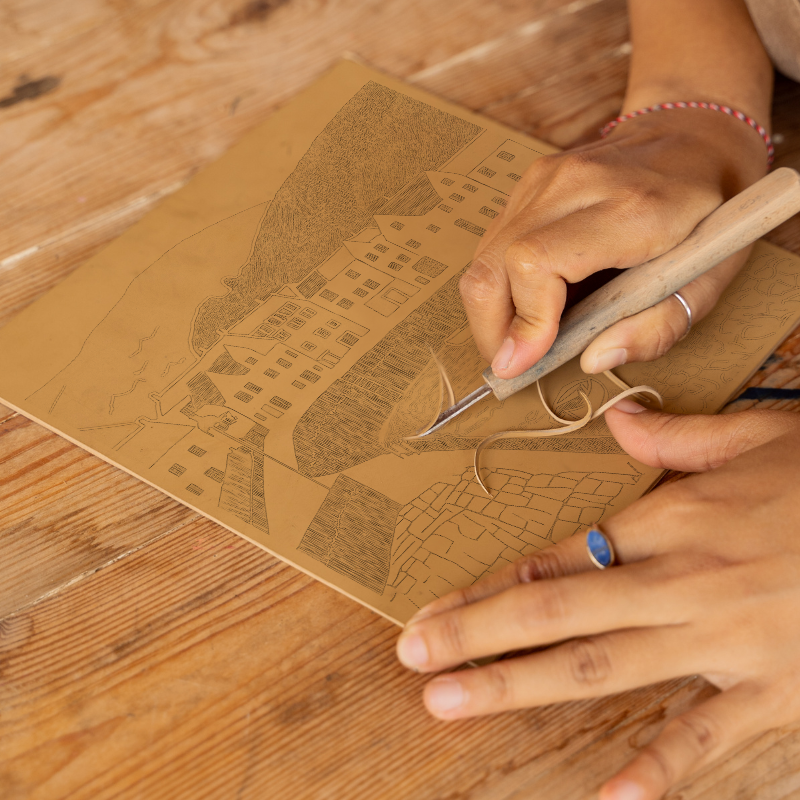 Immerse yourself in the quaint beauty of Ilfracombe Harbour with this captivating lino-print style artwork. Part of our exclusive UK Picturesque Harbours and Beaches collection, this piece depicts the serene charm of Devon's iconic seafront. The composition beautifully captures the essence of a tranquil harbour village, with an array of small boats gently floating in the rippling water. The intricate lines of the harbour wall lead the eye to a collection of picturesque houses along the shore. Hills rise in the background, creating a striking contrast against the clear blue sky. The artwork's vibrant blue and white palette evokes a sense of peace and nostalgia, perfect for adding a touch of coastal elegance to your space. Available in a 36cm or 46cm square black or white frame, this artwork is a timeless addition to any home. For a unique experience, download the source images, including detailed line drawings, to create your own masterpiece.