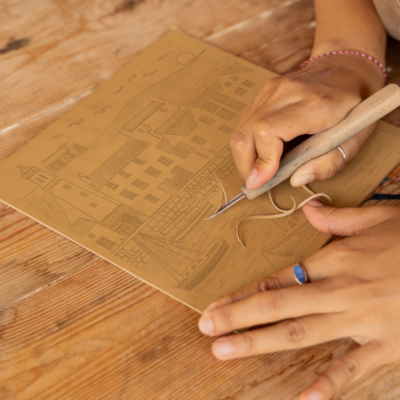 Capture the charm of Mevagissey Harbour, Cornwall, with this exquisite lino-print style artwork. Available in a choice of 36cm or 46cm square frames with sleek black or white finishes, this piece truly brings the picturesque Cornish harbour to life. The vibrant shades of blue and white depict a serene harbour scene, showcasing boats gently floating in the tranquil waters and charming buildings lining the quay. Seagulls gracefully soar in the sky as the sun casts its last light over the peaceful seascape, creating a sense of calm and nostalgia. This artwork is part of our ‘UK Picturesque Harbours and Beaches’ collection, celebrating the tranquil beauty of Britain’s coastal gems. For a unique creative journey, purchase the source images and line drawings to craft your own lino print masterpiece. Decorate your space with this stunning tribute to Cornwall’s scenic coastline.