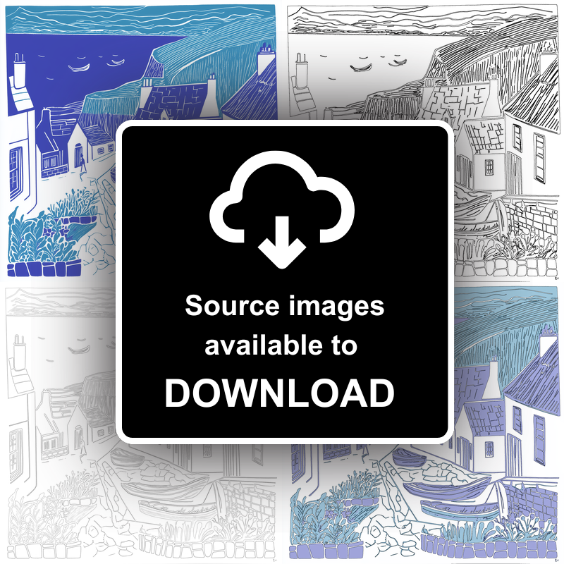 Capture the enchanting beauty of Robin Hood’s Bay, North Yorkshire, with this exquisite lino-print style artwork. Part of our UK Picturesque Harbours and Beaches collection, this piece elegantly illustrates the charming village nestled against the vibrant blue backdrop of the sea. The print showcases the quaint white cottages with slate roofs, surrounded by verdant foliage and cobbled pathways leading to the bay, where boats rest atop the rocky shore. The artist’s skillful use of bold lines and textures vividly brings to life the serene atmosphere of this historic coastal village. Available in both 36cm and 46cm square, you can choose a black or white frame to perfectly complement your home decor. Additionally, for creative enthusiasts, download the source images, including line drawings and sketches, to craft your own artistic interpretations.