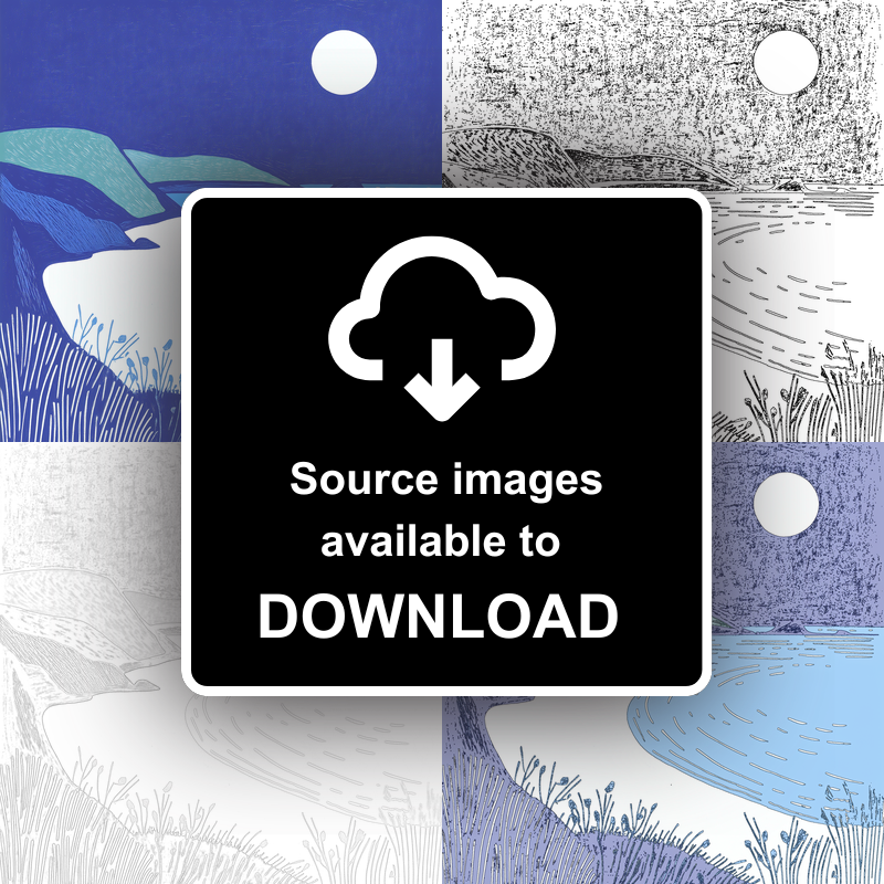 Experience the serene beauty of Sandwood Bay, Sutherland through this exquisite lino-print style artwork, part of our distinguished UK Picturesque Harbours and Beaches collection. This piece captures the tranquil essence of the bay, featuring a coastline bathed in the soft glow of a full moon. The meticulous detailing depicts rugged cliffs and the expansive ocean stretching into the horizon. The cool blues and rich greens portray a landscape both wild and calming. Available in 36cm or 46cm square, framed in a sleek black or white option to suit any décor. A unique offering allows you to purchase and download the source images, including original line drawings and sketches, for you to create your own lino prints. Perfect for enthusiasts of coastal beauty and artistic creativity.