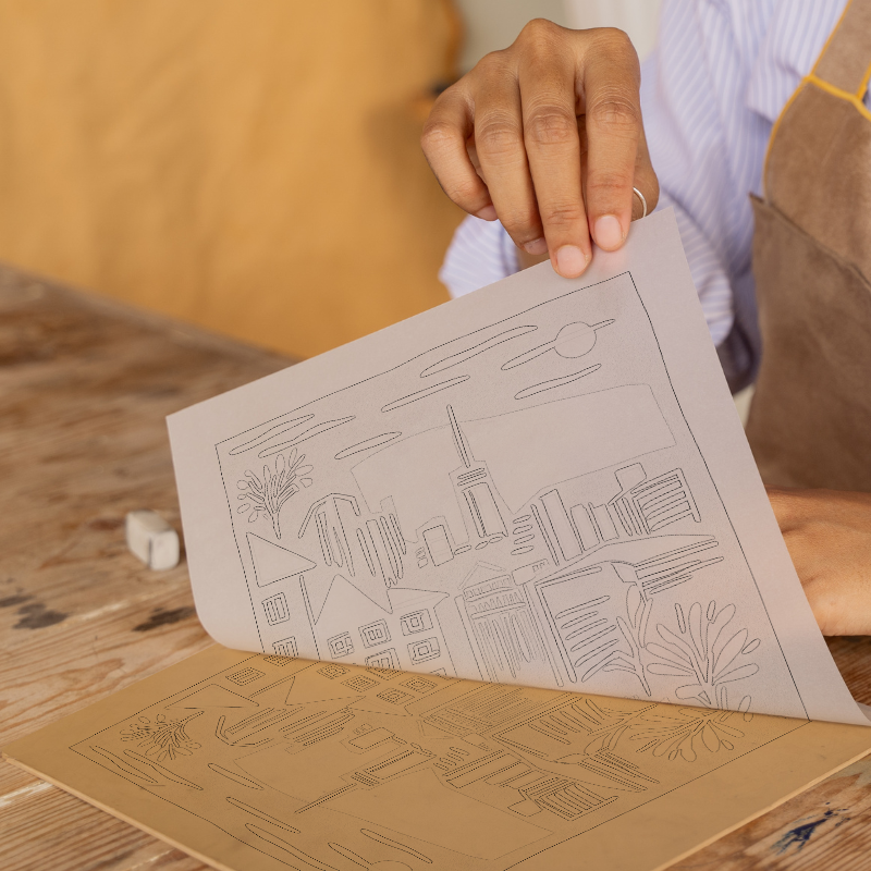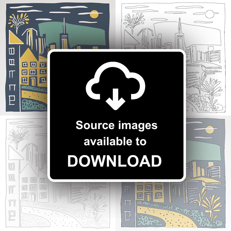 Part of our Architecture & Cityscapes collection, this striking lino-print style artwork captures the vibrant essence of the Sydney skyline. The piece showcases iconic architectural elements, with a modern, abstract twist. The skyline is composed of bold, angular shapes and layered textures, creating a dynamic contrast against the serene backdrop. Vibrant yellows highlight the buildings, evoking the warmth of the Australian sun. The structured greenery and curved pathways provide a harmonious balance, inviting the viewer into the bustling cityscape. Available as a framed print in a classic black or white frame, measuring 36cm or 46cm square. Additionally, our unique offering allows you to purchase and download the source images, including the line drawings and sketches, so you can craft your own lino print masterpiece. This piece is perfect for art enthusiasts or anyone looking to bring a piece of Sydney’s charm into their home.