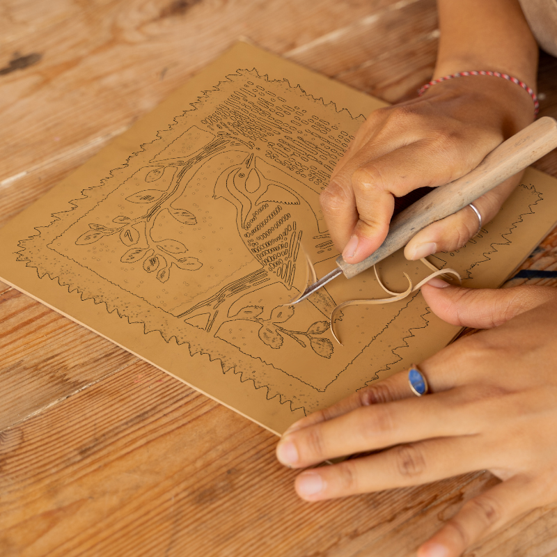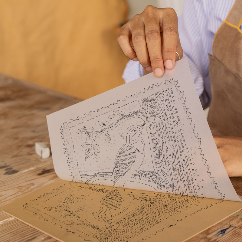 This exquisite lino-print style artwork, part of our beloved Nature & Wildlife collection, captures the essence of a woodpecker poised on a tree trunk. The bold, intricate lines depict the woodpecker in stunning detail, showcasing its unique patterns and characteristic features. The artwork is framed by the dense foliage of the tree, with leaves cascading around the scene, adding a sense of movement and life. The background features an enchanting blend of deep oranges and contrasting blues, creating a striking visual balance that draws the eye to the woodpecker's form. Available in elegant black or white frames and two sizes (36cm or 46cm square), this piece serves as a captivating focal point for any room. For those intrigued by the creative process, the option to purchase and download the source images, including line drawings and sketches, allows you to immerse yourself in the artistry and craft your own lino prints.