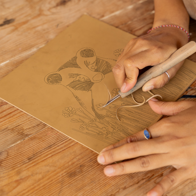 Discover the charming appeal of our "Cute Baby Badger" lino-print style artwork, part of our exclusive Cute Animals collection. This delightful piece captures the sweet innocence of a baby badger with striking simplicity and sophistication. Rendered with fine black lines, the badger peeks curiously from behind a vibrant field of mustard yellow wildflowers. The teal background provides a serene contrast, enhancing the overall aesthetic. Available in two sizes, 36cm or 46cm squared, each print can be elegantly framed in your choice of black or white to complement any decor style. For those who love a personal touch, we also offer the unique opportunity to purchase and download the source images, including detailed line drawings and sketches, allowing you to create your own lino print masterpiece.