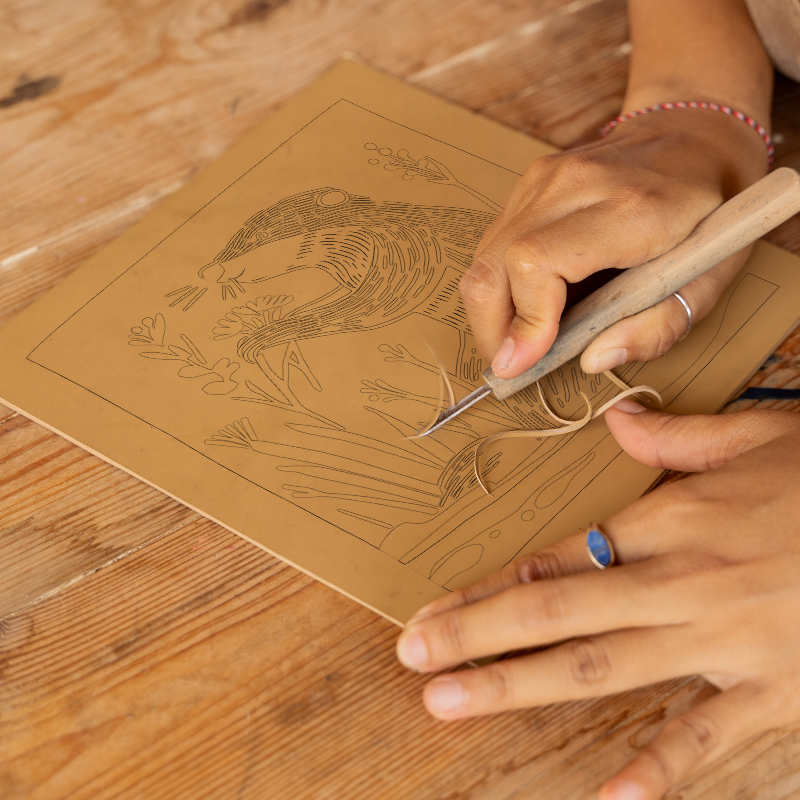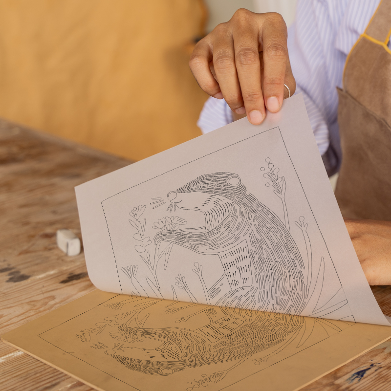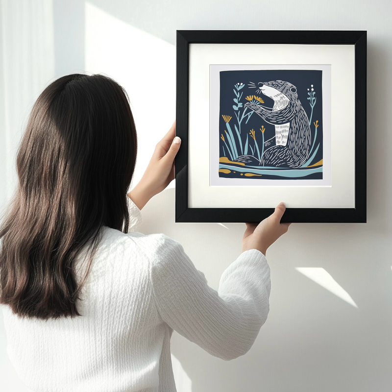 Discover the charm of our 'Cute Baby Beaver' lino-print style artwork, a delightful addition to our Cute Animals collection. This enchanting piece captures the essence of a serene and playful scene, featuring a charming baby beaver surrounded by delicate flowers and lush foliage. The beaver, depicted with a sense of whimsy, is shown holding vibrant mustard-yellow flowers in a peaceful setting. Rich in detail, the artwork uses flowing lines and an array of detailed patterns that highlight the artisanal lino-cut style. The contrasting colours of deep navy, soft teal, and warm mustard bring warmth and vibrancy, making it perfect for any room. Available as a framed print in both black or white, choose between 36cm or 46cm square sizes. Alternatively, purchase download options for line drawings and sketches to craft your own linocut print at home.