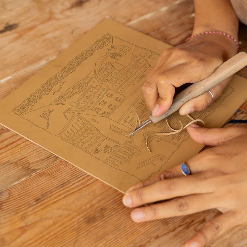 Additionally, for the creative at heart, we offer a unique option to purchase and download the source images, including detailed line drawings and sketches, encouraging you to craft your own lino print masterpiece.