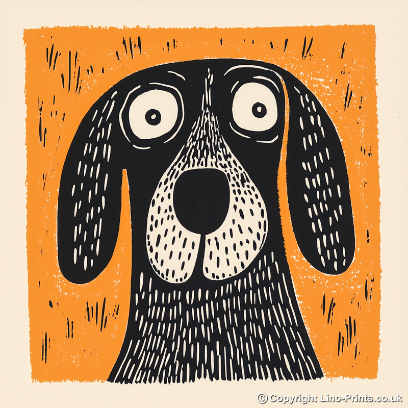 Add a touch of canine charm to your home with our stunning lino-print style artwork featuring the delightful Beagle, from our exclusive Dog Breeds collection. This captivating piece showcases a playful Beagle, brought to life with bold and expressive lines against a vibrant orange background. The artwork captures the Beagle’s inquisitive and energetic personality through stylized eyes and a distinctive spotted coat.\n\nEach print is meticulously framed in either classic black or elegant white, available in two sizes: 36cm or 46cm square, ensuring a perfect fit for any space. The striking contrast of the black Beagle against the warm orange hue creates a visually stunning piece that is sure to be a conversation starter.\n\nIn addition to the framed prints, we offer a unique opportunity to purchase and download the source images, including detailed line drawings and original sketches. This allows art enthusiasts and DIY aficionados alike to recreate the magic of lino printing in the comfort of their own home. Whether it's displayed in a living room, bedroom, or creative space, this artwork offers a vibrant and heartwarming tribute to one of the most beloved dog breeds.