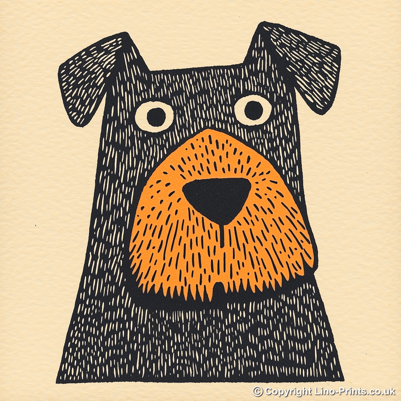 Celebrate the unique charm of the Airedale Terrier with our striking lino-print style artwork. Part of our exclusive Dog Breeds collection, this piece captures the Airedale's distinctive appearance with bold lines and vibrant colour contrasts. The artwork showcases the terrier from a frontal view, with a focus on its expressive eyes and characteristic muzzle. The use of dark inky black lines combined with an eye-catching burnt orange perfectly highlights the Airedale's lively personality and distinguishable features. Printed on high-quality textured paper, the print is available in two sizes, 36cm or 46cm square, and can be framed in your choice of sleek black or white. For those with a creative flair, we also offer a unique digital download option. Access the original source images, including detailed line drawings and sketches, to try your hand at creating your own masterpiece. Whether displayed in a living room, office, or studio, this artwork is perfect for dog lovers and art enthusiasts alike, serving as both a conversation starter and an homage to this beloved breed.