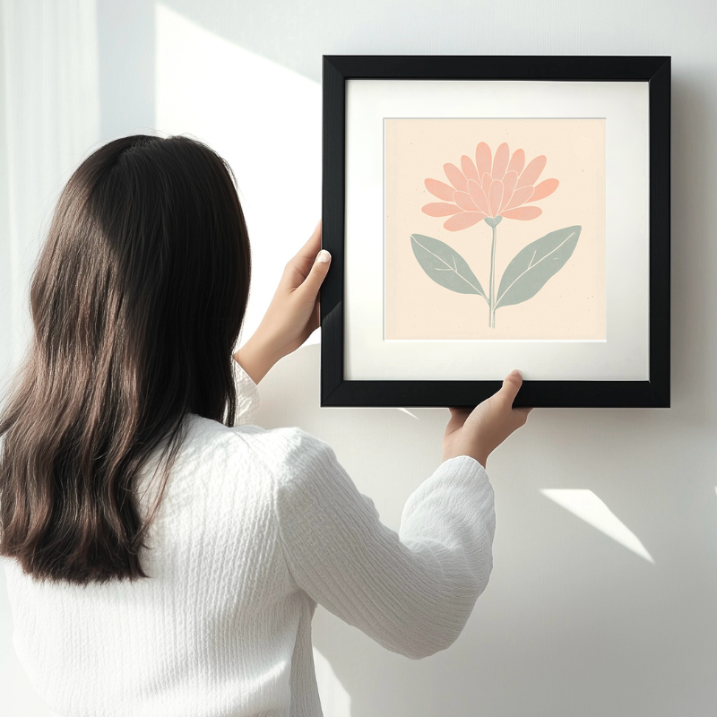 This exquisite piece from our Floral & Botanical collection captures the timeless beauty of a Chrysanthemum in a captivating lino-print style. The artwork showcases a single Chrysanthemum bloom, depicted with a sense of elegance and simplicity. Each petal is rendered in a muted coral hue, delicately arranged around the centre, creating a sense of harmony and balance. The detailing of the petals is subtle yet intricate, giving the flower a lifelike texture that draws the eye.