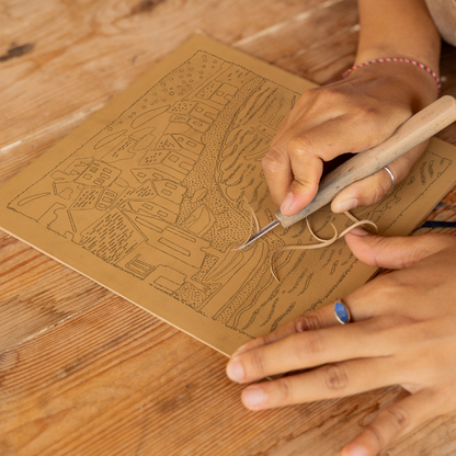 This vibrant lino-print style artwork captures the essence of Wells-next-the-Sea, a charming coastal town in Norfolk, known for its picturesque harbours and stunning beaches. The scene is filled with lively energy, depicting a row of quaint houses with distinctive red-orange roofs lined along the beach. Sailboats gently sway in the dark blue waters, adding a touch of maritime charm. The foamy waves and sandy shores are masterfully illustrated with a textured finish, enhancing the artwork’s dynamic appeal. This piece is part of our "UK Picturesque Harbours and Beaches" collection and is available as a framed print in black or white, in sizes of 36cm or 46cm square. Alternatively, purchase and download the source images to create your own unique lino print masterpiece. This artwork is perfect for beach lovers and art enthusiasts alike, bringing a piece of the Norfolk coastline into any living space.
