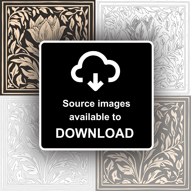 Available in two sizes, 36cm and 46cm square, these prints come framed in your choice of either black or white, ensuring they complement any room and style. For those creative spirits, we offer a unique option to purchase and download the source images, including detailed line drawings and sketches, enabling you to bring this artwork to life with your own lino printing projects.