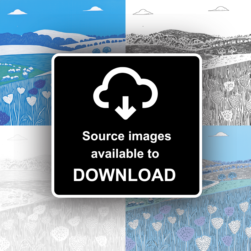 For the creatively inclined, we offer a unique option to purchase and download the source images, including detailed line drawings and sketches, allowing you to craft your own version of this beautiful scene using traditional lino printing techniques.