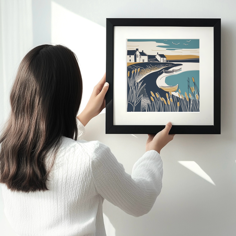Available in a choice of black or white frames, in 36cm or 46cm squares, this artwork not only adds aesthetic appeal but also offers a slice of Norfolk's natural allure to any room. Additionally, for a personal touch, we offer the unique option to purchase the source images, including line drawings and sketches, allowing art enthusiasts and DIY lovers to create their own lino prints. This piece is part of our exclusive Norfolk collection, celebrating the tranquil vistas and coastal heritage of the region, making it a perfect gift or a treasured addition to your collection.