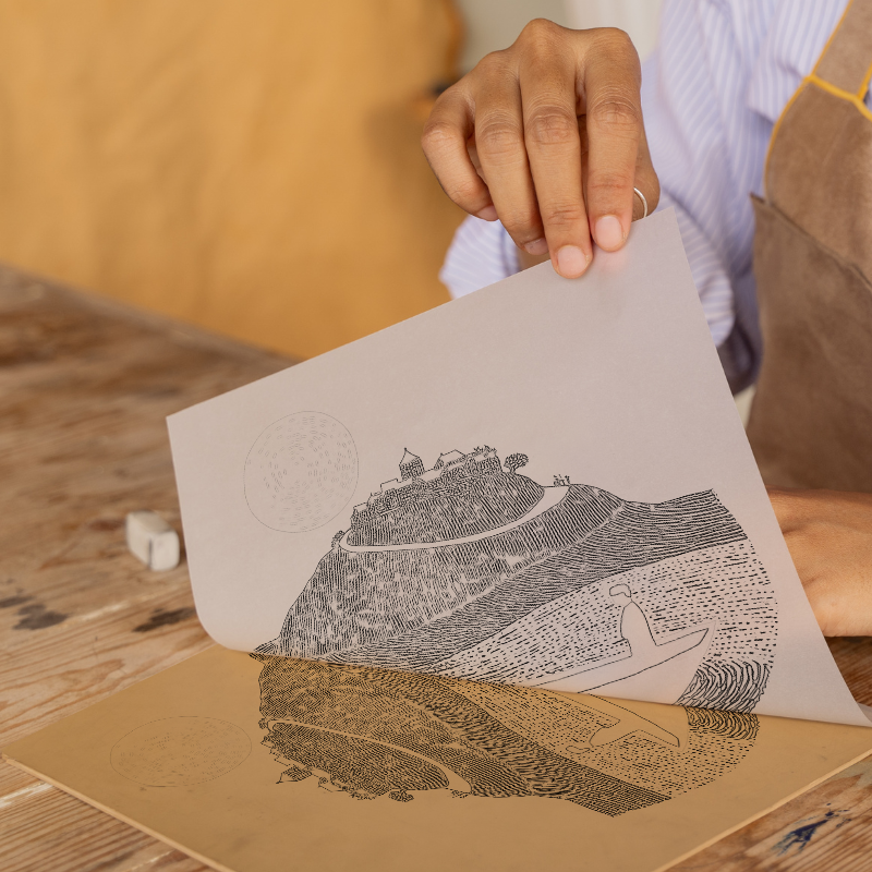 For those inspired to create, we offer a unique opportunity to purchase and download the original line drawings and sketches. Embrace your creativity and bring this stunning scene to life through your own lino-print interpretations. Whether displayed in a sophisticated office or a cozy living room, this artwork is bound to evoke admiration and a sense of wanderlust.