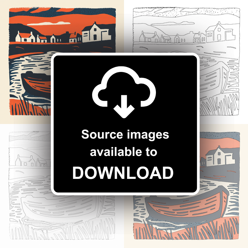 The piece not only offers visual delight but also the opportunity for creativity. Purchase and download the source images, including line drawings and sketches, to create your own lino prints at home. Embark on a personal artistic journey inspired by Norfolk’s timeless scenery.