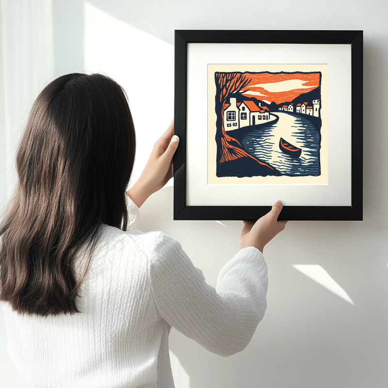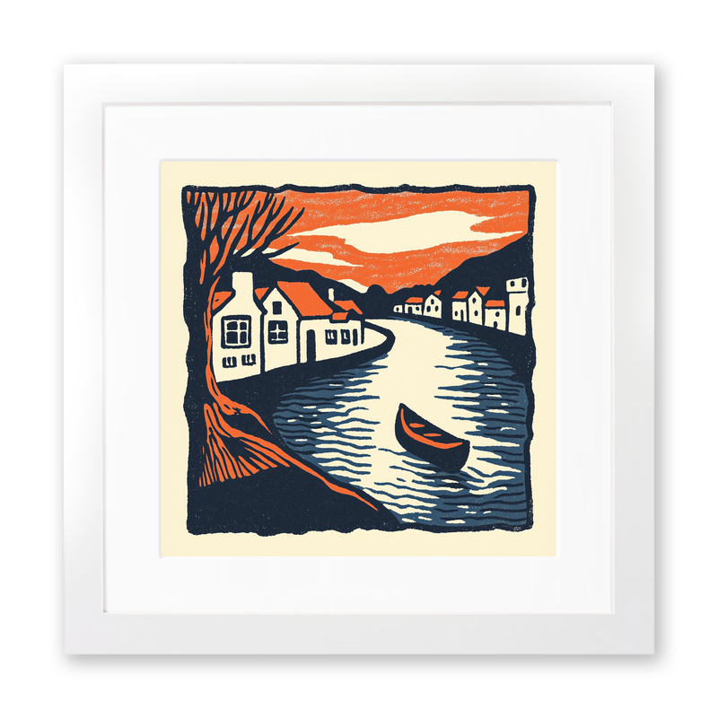 Experience the serene beauty of a classic Amsterdam canal at twilight with our stunning lino-print style artwork. Part of our exclusive Architecture & Cityscapes collection, this piece exquisitely captures the calm waterways and charming architecture that define the city. Available in a choice of black or white frames, and sizes of 36cm or 46cm square, it’s the perfect addition to any space. For those who love to create, we offer the unique opportunity to purchase and download the source images, including line drawings and sketches, so you can craft your own lino print. This artwork embodies a timeless blend of tradition and personal creativity, making it an ideal gift or personal treasure. Transform your surroundings with the enchanting twilight hues of orange, navy, and cream, bringing a touch of Amsterdam's charm right into your home.