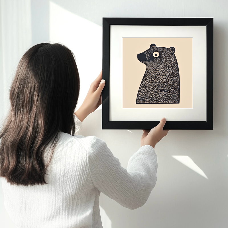 Introducing our delightful framed print featuring a Cute Baby Beaver, part of the exclusive Cute Animals collection. This charming artwork beautifully captures the innocence and curiosity of a baby beaver, depicted in the signature lino-print style. The simple yet captivating design is accentuated by a textured pattern, making it a perfect piece to add character to any space. Choose from a sophisticated black or white frame, available in either 36cm or 46cm square dimensions, to seamlessly blend with your interior decor. Additionally, for the creative spirit, we offer a unique opportunity to purchase and download the source images, which include detailed line drawings and sketches, allowing you to create your own lino print at home. Celebrate your love for wildlife art with this adorable and versatile piece.