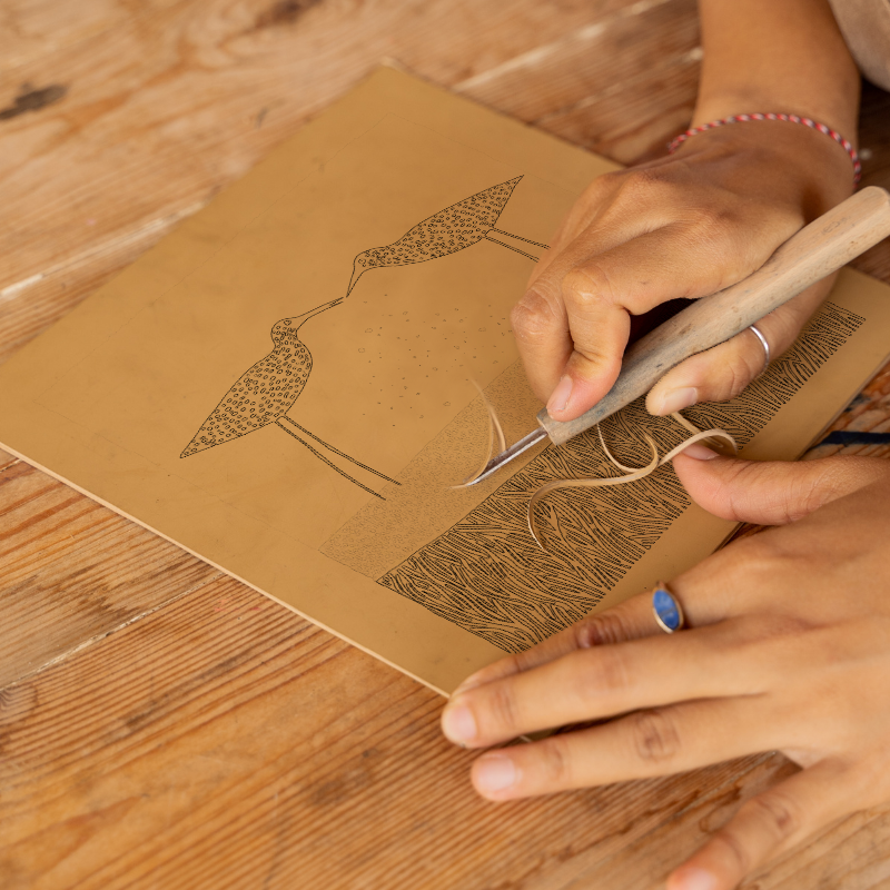 Offered in either a black or white frame and available in two sizes—36cm and 46cm square—this artwork elegantly complements any space, bringing the serene beauty of the Norfolk coast into your home. Additionally, embrace your artistic side with our unique option to purchase the source images, including line drawings and sketches, allowing you to create your own lino print masterpiece.