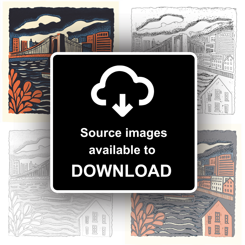 New York Brooklyn Bridge Linoprint-Style Art (22-5)