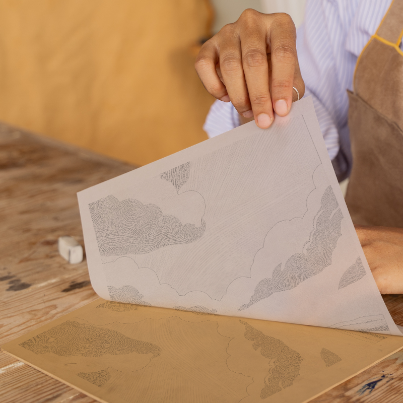 Bring the serene beauty of the Lake District into your home with this striking lino-print style artwork, featuring dramatic cloud formations drifting above rolling hills. Created in the signature style of hand-crafted lino printing, this piece is rich in detail with exquisite line work that mimics the restless movement of clouds across a broad, open sky. The composition captures the essence of Cumbrian landscapes: expansive, tranquil, and ever-changing under shifting light. In the foreground, bold, undulating hills in deep blue give way to gentle layers of lighter blue and hints of gold, evoking the characterful fells and meadows of the district. Above, the sky is carved with energetic lines, accentuating the fluid shapes of the clouds as they move gracefully overhead, their forms rendered with meticulous, textured precision. This artwork is available professionally framed in classic black or fresh white, and in two choices of square format — 36cm or 46cm — making it a versatile addition to any space. For creative souls, we offer a unique downloadable pack, including the source image, high-resolution line drawings, and sketches, allowing you to recreate the lino-print process at home. This print is both a celebration of the Lake District’s awe-inspiring scenery and an inspiring invitation to connect with the art of printmaking.