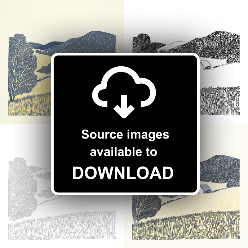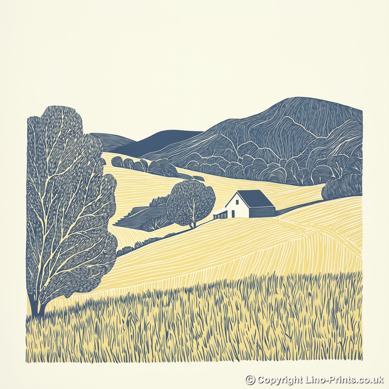 Bring the tranquillity of the Lake District into your home with this stunning lino-print style artwork, featuring a quaint farmstead nestled within a peaceful valley. The detailed piece celebrates the simplicity and serenity of rural life, using bold line work and gentle contrast to evoke the rolling hills, patchworked fields, and quiet trees that characterise the region. At the heart of the scene sits a white farmhouse, its sturdy silhouette framed by gently sloping pastures and winding country paths. The foreground features intricate detailing of grasses and a prominent tree, while the background is filled with softly undulating hills that create a sense of depth and timeless calm. Available framed in elegant black or white and offered in 36cm or 46cm square formats, this artwork is perfect for adding a touch of countryside charm to any space. For artists and crafters, we offer a unique downloadable package which includes the source image, line drawing, and sketch—ideal for creating your own lino print at home. Celebrate the beauty of the Lake District with this original and versatile piece, whether as a statement print or a creative project.