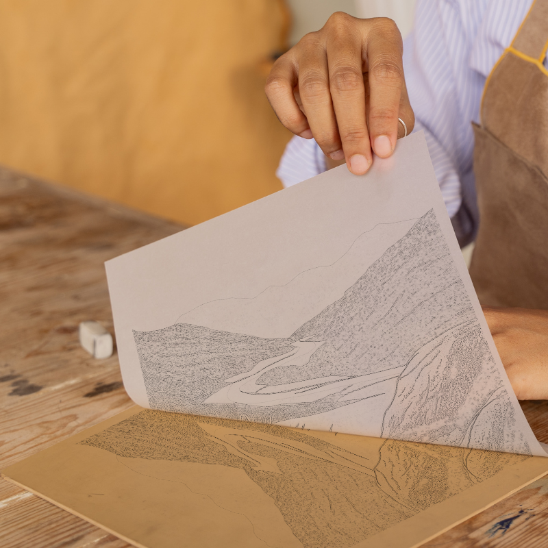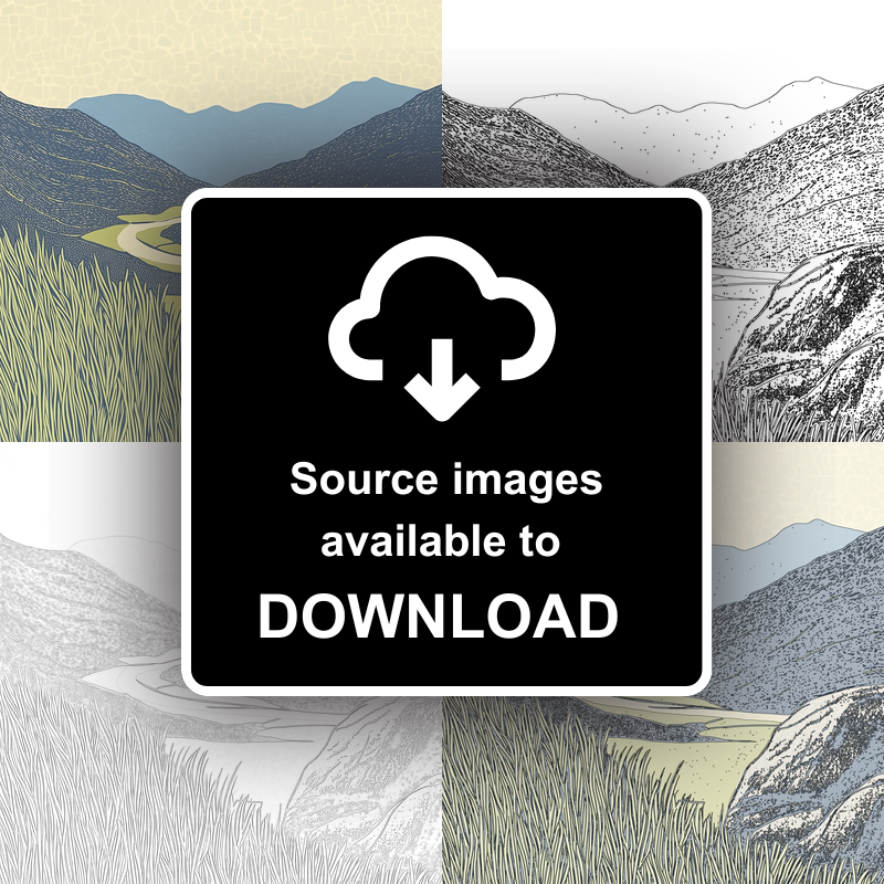 Bring the tranquil beauty of the Lake District into your home with this striking lino-print style artwork featuring Friar's Crag. Nestled on the picturesque shores of Derwentwater, Friar's Crag is renowned for its panoramic views and peaceful charm. In this piece, sweeping grasses fill the foreground, leading your eye towards the serpentine path cradled between gently undulating hills. Subtle cross-hatching and textured details in the print create a tactile, handmade quality reminiscent of traditional linocuts, while a muted palette of sage greens, soft blues, and creamy yellows evokes the natural serenity of the landscape. The hills rise gently into the distance beneath a softly patterned sky, capturing the layered silhouettes of fells beyond. Every detail, from the delicate lines in the rock to the rhythmic sweep of the grass, invites you to linger in this timeless moment by Derwentwater. Available framed in black or white and two square sizes (36cm or 46cm), this print is perfect for any living space or as a distinctive gift. For the creative spirit, you can also purchase a digital download of the source images, including original sketches and line drawings, to create your own lino print at home. Part of our exclusive Lake District Collection, this piece celebrates the quiet majesty of one of the UK's most loved viewpoints.