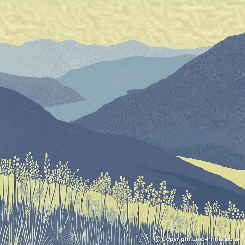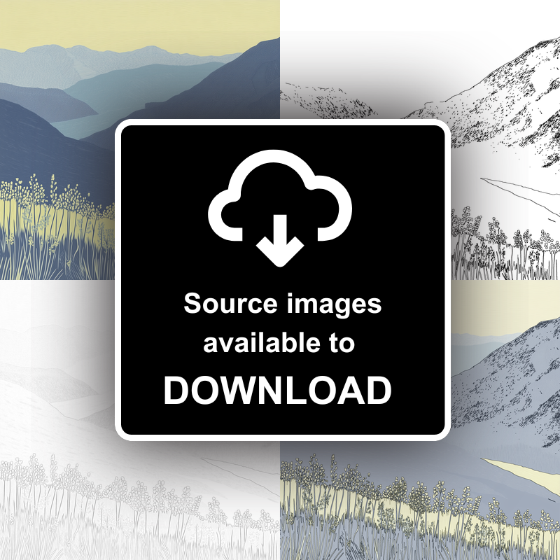 Bring the serene beauty of the Lake District into your home with this stunning lino-print style artwork featuring Friar's Crag viewpoint. Part of our exclusive Lake District collection, this print captures the mesmerising vista across Derwentwater, showcasing the rolling silhouettes of distant fells, tranquil waters, and delicate foreground details. The composition uses elegant layering of soft blues and gentle yellows, evoking the peaceful light of a calm late afternoon. Finely etched lines and bold forms, characteristic of traditional lino printing, lend the piece both texture and a timeless, handcrafted quality. At the front, clusters of wild grasses and foliage gracefully frame the scene, drawing the eye into the tranquil depths of the valley and towards the undulating fells in the background. Available framed in classic black or white, and in two square sizes (36cm or 46cm), this print makes a sophisticated addition to any interior. For creative enthusiasts, we also offer downloadable source images, including line drawings and sketches, so you can experience the joy of crafting your own lino print at home. Whether as a gift for a Lake District lover or as a keepsake of your own adventures, this artwork seamlessly combines classic technique with contemporary style.
