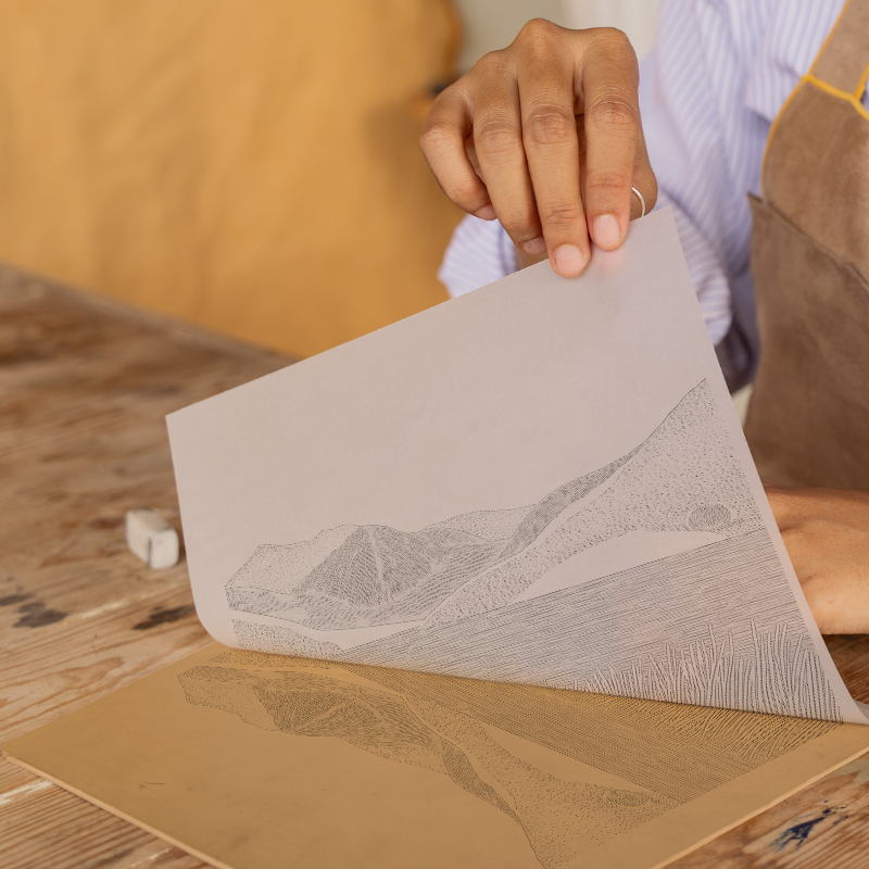 Celebrate the beauty of the Lake District with this stunning lino-print style artwork of Grisedale Pike. Perfectly capturing the tranquillity and majesty of one of the region’s iconic fells, this piece uses bold, expressive lines and an inspired use of limited colour to evoke the atmosphere of the Cumbrian landscape. In the foreground, soft golden reeds sway by the water’s edge, their delicate lines providing texture and movement. Beyond, the calm, blue-grey surface of a lake stretches across the scene, leading the eye towards the softly rolling hills and the striking, angular peak of Grisedale Pike, rendered in deep slate blue. The surrounding slopes, depicted in warm ochre and pale stone tones, contrast gently against the cool distant mountains, highlighted with fine detailing that is characteristic of the lino-print medium. The soft, muted sky completes the composition, lending a sense of stillness and space to this evocative landscape. Available professionally framed in black or white, either 36cm or 46cm square, this print makes a wonderful addition to any home or office. For those who are creatively inclined, you can also purchase and download the source images, including line drawings and original sketches, to create your own lino-print masterpiece inspired by the Lake District. This piece is part of our exclusive Lake District collection, ideal for lovers of art, nature, and the British outdoors.
