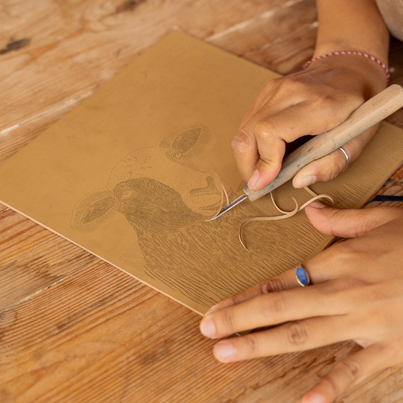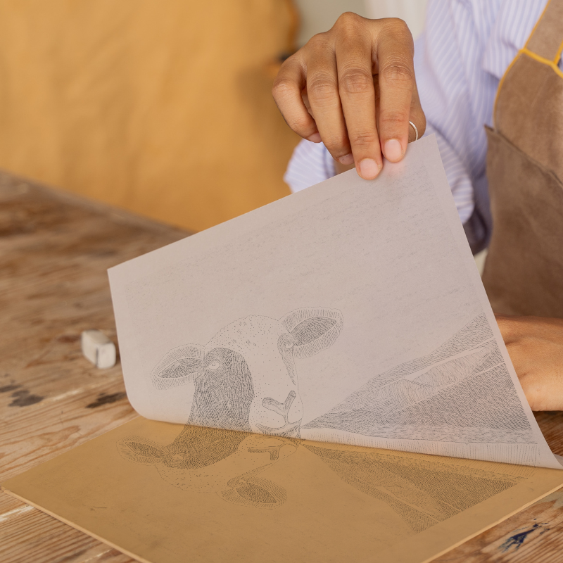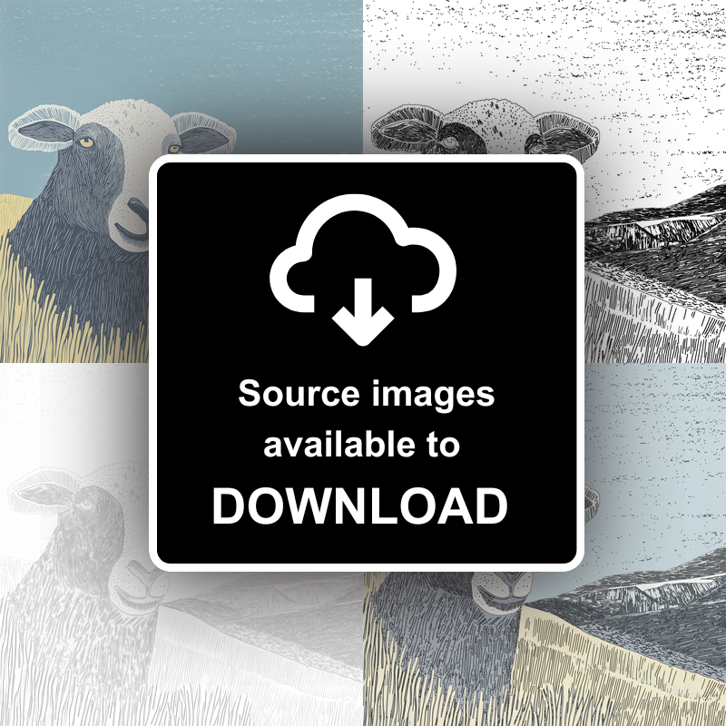 Bring a touch of the Lake District countryside to your home with this captivating lino-print style portrait of a Herdwick sheep. Renowned for their resilience and charm, Herdwick sheep are an iconic sight grazing among the rolling fells of Cumbria, and this artwork captures their character with striking simplicity and elegance. Set against a sweeping backdrop of stylised hills and pastel skies, the sheep’s distinctive facial features and textured fleece come to life through fine linework and subtle shading. The palette of soft blues, greys, and gentle yellows evokes the tranquil beauty of the Lakeland landscape, while the sheep’s golden-yellow eyes add a pop of warmth and personality. Available framed in black or white, in your choice of 36cm or 46cm square, this piece makes a beautiful addition to any living space, office, or rural retreat. For creative souls, we offer an exclusive downloadable pack featuring the source images, including line drawings and original sketches, so you can carve and print your own Herdwick scene at home. Whether as a thoughtful gift or a treat for yourself, this print connects you to the heart of the Lake District and celebrates one of its most beloved animals.