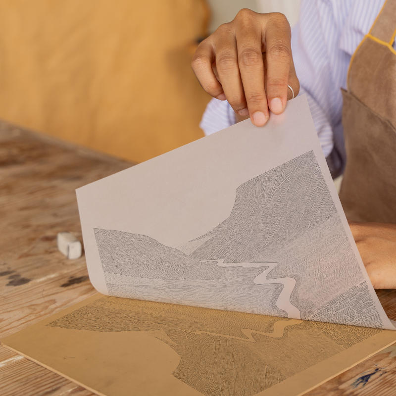 Bring the dramatic beauty of the Lake District into your home with our striking lino-print style artwork of Honister Pass. This hand-crafted piece captures the iconic snaking road of Honister Pass as it carves through steep mountains and rolling hills, all rendered in the distinctive, textured marks of traditional lino cutting. The craggy peaks rise majestically on either side, depicted in rich charcoal tones adorned with white etchings, while the valley floor features olive-gold highlights that contrast beautifully with the winding cream road. The sky has been given a calming, soft blue-grey wash, allowing the bold contours of the landscape to take centre stage. Available framed in elegant black or white in both 36cm and 46cm square sizes, this print makes a stunning focal point in any room, perfect for Lake District lovers and art enthusiasts alike. For those who enjoy embracing their artistic side, our unique option lets you purchase and download the source images — including the original line drawings and sketches — to create your very own lino print inspired by this classic British landscape. Each purchase supports independent artists and brings the wild, rugged charm of Cumbria’s fells into your living space.