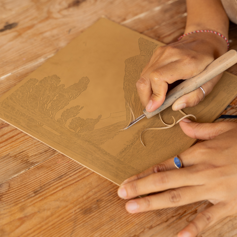 Bring the tranquillity and majesty of the Lake District into your home with this stunning lino-print style artwork, featuring a solitary kayaker drifting near the iconic Buttermere pines. This piece captures the essence of peaceful adventure amid nature’s grandeur: tall, textured pines dominate the left foreground, neatly framing the serene lake which stretches towards distant, golden-yellow mountains. The stylised ridges and valleys of the fells are rendered in soft, mottled blue and warm ochre, lending a calm, nostalgic mood. Silhouettes of fir trees add a sense of depth and drama along the water’s edge, as the kayaker paddles quietly under a pale, open sky. The linework and careful shading evoke a classic hand-carved lino print, making this both a contemporary and timeless addition to any space. Each print is available beautifully framed in your choice of black or white, offered in both 36cm and 46cm square formats for versatile display options. For those inspired to create their own printmaking masterpieces, you can also purchase and download the original source images, including detailed line drawings and preparatory sketches. Celebrate the serenity and adventure of the Lake District with this evocative framed artwork, perfect for lovers of the outdoors, printmaking, and modern British landscape art.