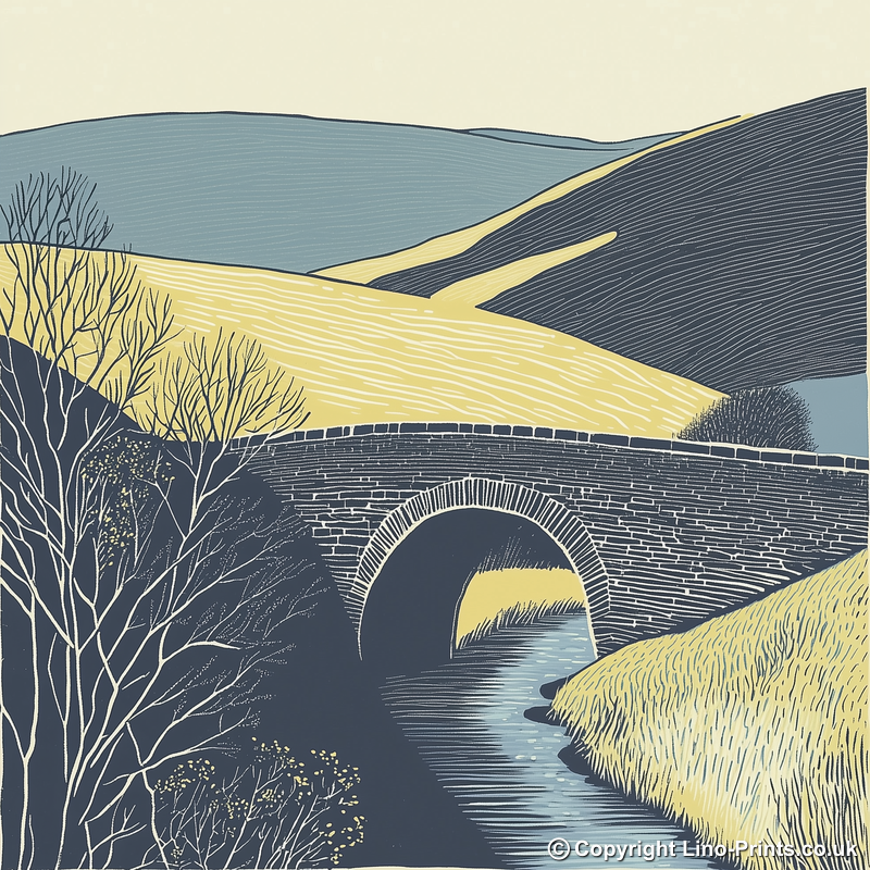 Packhorse bridge over a beck Linoprint-Style Art (2495-1)