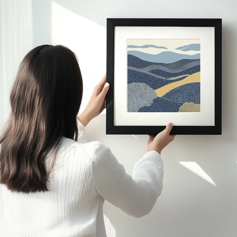 All our framed prints are presented in your choice of black or white frames, sized at 36cm or 46cm square—each one ready to hang and bring a touch of contemporary British countryside to your home or office. For creatives, we offer a unique downloadable set of source images including high-resolution line drawings and initial sketches. This allows you to craft your own lino print inspired by this iconic Lake District scene—perfect for beginners and seasoned printmakers alike!