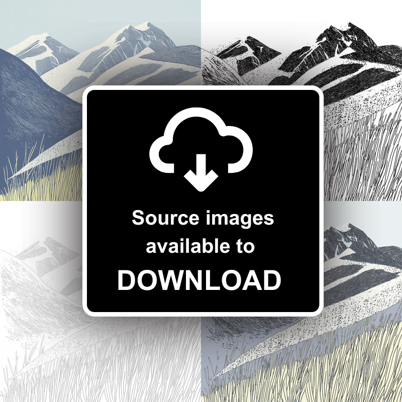 Snow-dusted fell tops Linoprint-Style Art (2557-1)