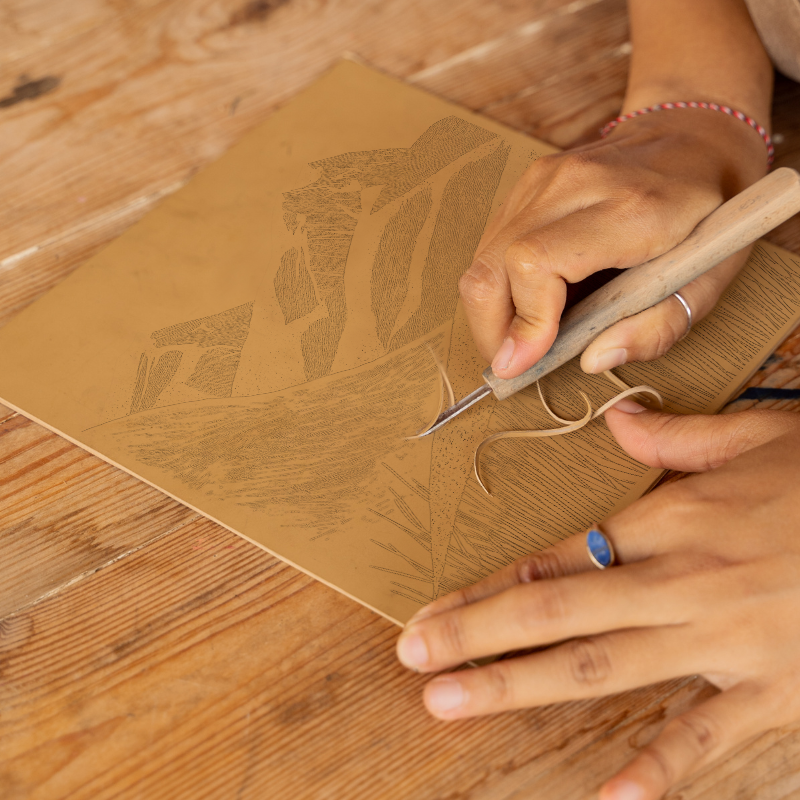 Each print is elegantly framed in either black or white, and available in both 36cm and 46cm square sizes, making it a versatile addition to any space. For those seeking a creative experience, we also offer a unique option: purchase and download the original source images, including line drawings and sketches, to create your own lino print at home.