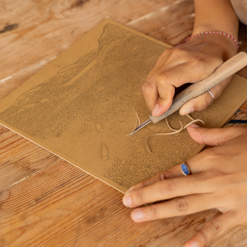 Each print is meticulously framed in your choice of black or white and available in 36cm or 46cm square. For creatives seeking a hands-on experience, we offer the unique option to purchase and download the original source images, including line drawings and sketches—perfect for making your very own lino print at home. This artwork forms part of our Lake District collection, celebrating one of the UK's most loved landscapes.