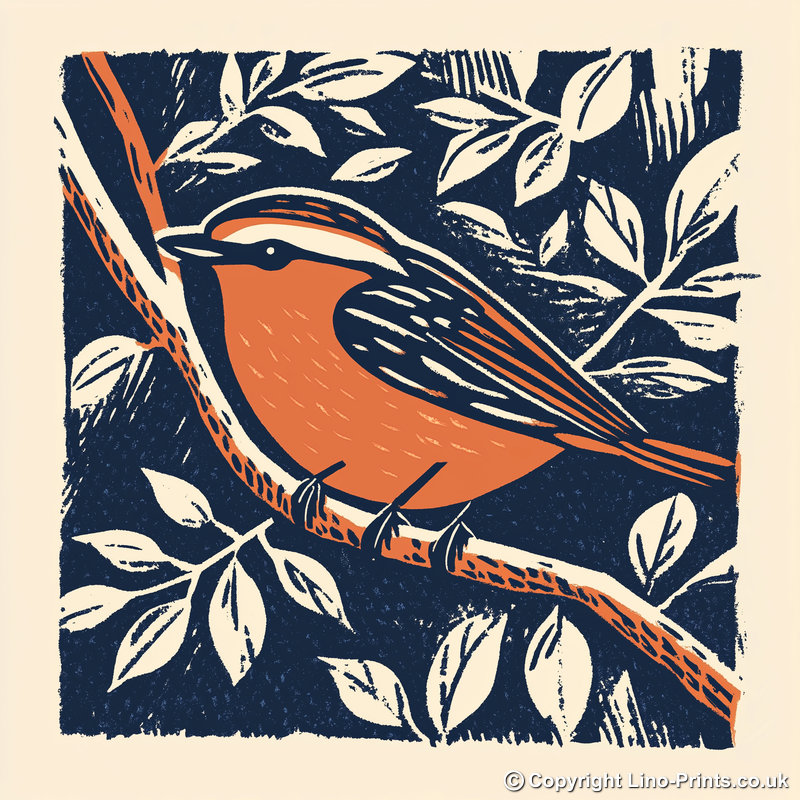 Cute Baby Robin Linoprint-Style Art (45-3)