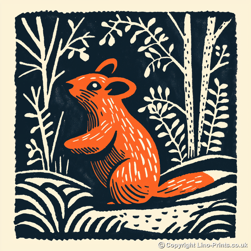 This delightful lino-print style artwork features an endearing chinchilla nestled amidst a whimsical garden scene. The piece captures the curiosity and playfulness of this charming creature with strong, expressive lines that are a hallmark of lino art. The chinchilla, depicted in a vibrant orange, stands against a backdrop of delicate foliage in contrasting deep blue, creating a striking silhouette that draws the eye. The intricate use of lines and textures within the foliage adds depth and interest, making this a captivating piece for any room. Available as a framed print in elegant black or white, this artwork comes in two sizes: 36cm or 46cm square. For those who love to craft, the option to download the source images, including line drawings and sketches, allows for a unique opportunity to recreate this adorable scene into your own lino prints. Part of our Cute Animals collection, this piece is a perfect gift for animal lovers and art enthusiasts alike.