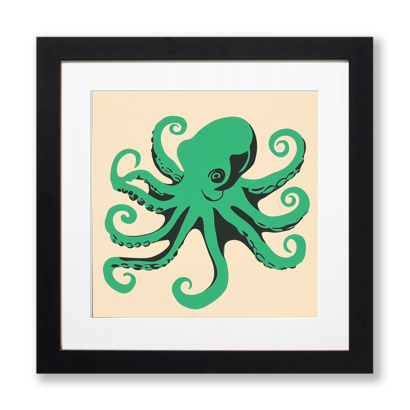 Dive into the beauty of marine life with our captivating lino-print style artwork, featuring a mesmerising octopus with swirling tentacles. This piece is a part of our esteemed Nature & Wildlife collection, perfect for those who appreciate the intricate details of the natural world. The octopus is artfully rendered with elegant, flowing lines that bring its dynamic motion to life. Its tentacles swirl with graceful curves, creating a sense of movement and depth against the background. The artwork’s vibrant green contrasts beautifully with the deep black of its outlines, resulting in a visually striking piece. Available in square frames of either 36cm or 46cm, this print is framed in your choice of sleek black or classic white. Additionally, embrace your creativity with the option to purchase and download the source images, including line drawings and sketches, to create your own lino print masterpiece at home.