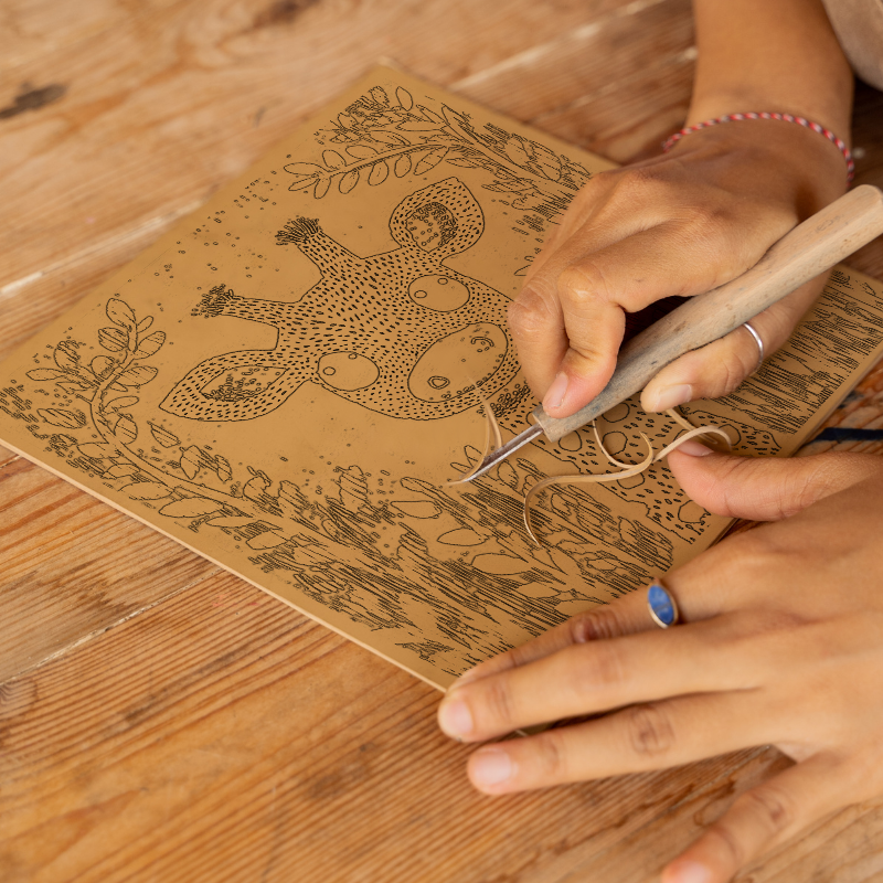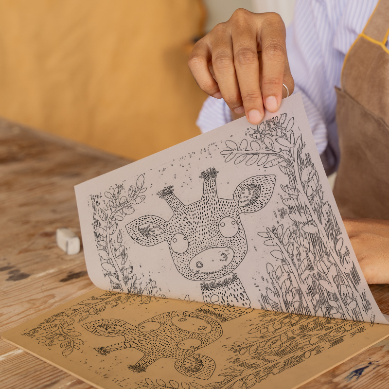 Cute Giraffe Calf Linoprint-Style Art (623-1)