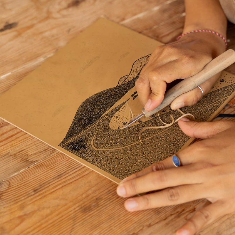 This exquisite lino-print style artwork captures the serene beauty of Luskentyre Beach on the Isle of Harris. Part of our 'UK Picturesque Harbours and Beaches' collection, it features a tranquil seaside view bathed in soothing blue hues. The print emphasizes the clean lines and minimalistic detail characteristic of lino art, depicting a gently curving coastline leading the eye towards rolling hills and sandy shores. The sky is filled with quaint, scattered clouds that complement the calm sea below. The black and white components add a stark, yet harmonious contrast to the vivid blue, creating a striking visual composition. Available framed in either black or white and measuring 36cm or 46cm square, this piece is an ideal addition to any home decor. For the creative at heart, you can also download the source images to craft your own lino print, adding a personal touch to this stunning landscape.