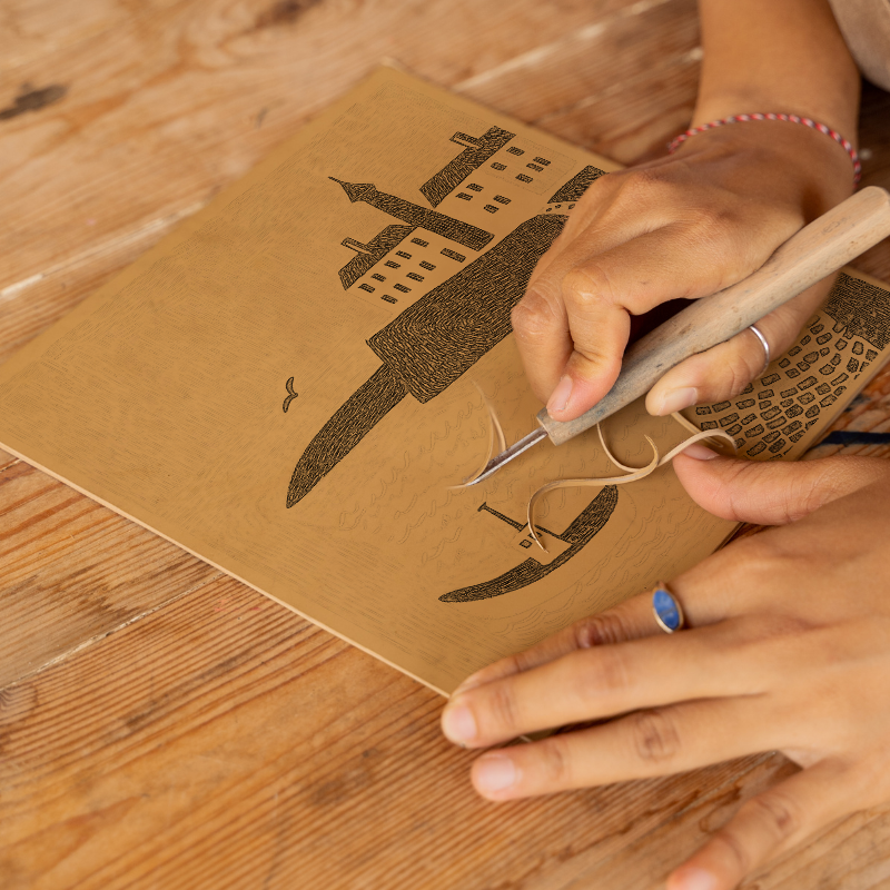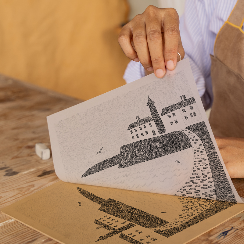 For those inspired by the creative process, we offer a unique option to purchase and download the source images, including line drawings and sketches, to craft your own lino print at home. Immerse yourself in the art of printmaking with this beautiful depiction of St Ives Harbour.