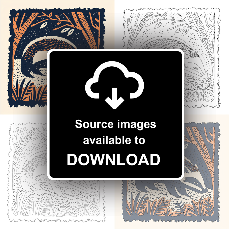 This striking lino-print style artwork beautifully captures the elusive presence of a badger emerging from its sett. Designed with a compelling combination of midnight blue, earthy terracotta, and crisp white, this piece draws you into the forest's tranquil undergrowth. The bold lines perfectly depict the badger's iconic stripes and robust form while the surrounding woodland elements, such as the trees and foliage, are intricately detailed, adding depth and character to the scene. Available framed in either black or white and in sizes of 36cm or 46cm square, it’s a versatile addition to any space. For those who admire hands-on creativity, we offer the option of purchasing digital downloads, including detailed line drawings and sketches, allowing you to craft your own version of this artwork. Part of our Nature & Wildlife collection, this print is perfect for those who cherish the beauty of the natural world.