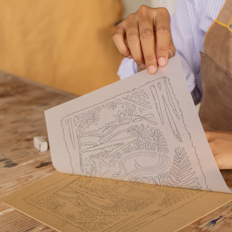 Add a touch of serenity and natural beauty to your living space with our 'Ferns with Resting Fox' lino-print style artwork. This piece, part of our Nature & Wildlife collection, artfully captures the tranquil scene of a fox nestled amid ferns. The intricate design features the fox in vibrant orange, contrasting against the deep blue and cream-toned background. The artwork's delicate linocut detailing portrays the lush ferns and surrounding forest, bringing to life a peaceful woodland setting. Offered in black or white frame options, and available in either 36cm or 46cm squares, this print is perfect for any nature enthusiast. For those interested in exploring creativity, we provide an exclusive option to download the source images, including line drawings and sketches, enabling you to create your very own lino print. Embrace the charm and craftsmanship of this unique piece and let it inspire your artistic journey.