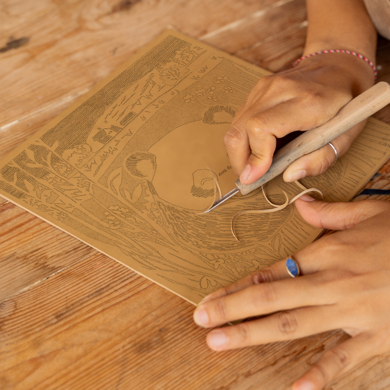 Discover the tranquillity and charm of nature with our exquisite lino-print artwork featuring a delightful Giant Panda cub. This captivating piece, part of our Cute Animals collection, showcases the panda nestled amidst lush greenery and delicate wildflowers. Its serene expression invites you into a world of peace and gentleness. The surrounding landscape unfolds in a calming palette of blue shades, depicting a whimsical countryside scene, complete with rolling hills, a quaint farmhouse, and scattered trees under a textured sky. Available in framed prints of 36cm or 46cm square, each piece is elegantly bordered in a choice of black or white frames. For those who wish to explore their creativity, purchase the complete source images, including intricate line drawings and sketches, to create your very own lino print.
