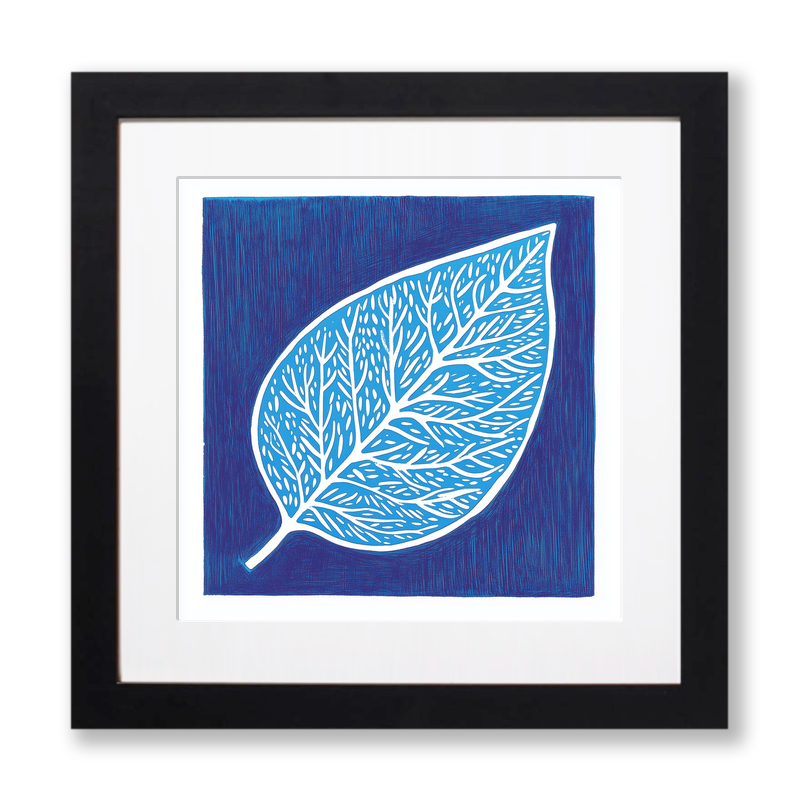 Discover the elegance of simplicity with our mesmerising Monochrome & Minimalist collection. This exquisite framed print features a single leaf rendered in a striking lino-print style. The leaf's intricate vein pattern is showcased against a bold backdrop, capturing nature's essence with a modern twist. The clear, angular lines define the leaf against a rich blue background, allowing it to stand out with striking contrast. Available in a choice of black or white frame, and in sizes of 36cm or 46cm square, this artwork can effortlessly enhance any space with its serene yet commanding presence. Uniquely, we offer the option to purchase and download the original source images, including the initial sketches and line drawings, for those inspired to create their own lino prints. Perfect for art lovers and DIY enthusiasts alike, this piece embodies the beauty of modern minimalism combined with the organic intricacies of the natural world.