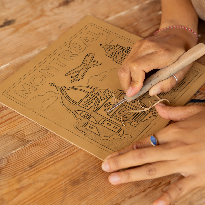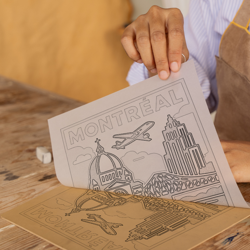 Celebrate the vibrant city of Montréal with this striking lino-print style artwork, part of our exclusive Travel Posters collection. Rendered in bold black lines and rich red accents, this piece captures the dynamic spirit and iconic landmarks of this cosmopolitan city. Prominently featured in the foreground is the grand domed silhouette of Saint Joseph's Oratory, renowned for its impressive architecture. To the right, the stylised lines of Montreal's famous skyscrapers evoke the city's modern urban landscape, while the Jacques Cartier Bridge arches elegantly across the water, tying historical and contemporary design together. Overhead, a plane soars against a sky of fluffy clouds, symbolising the city’s status as an international hub and the adventure of new journeys. The word 'MONTRÉAL' stands proudly at the top in bold, vintage-inspired lettering, completing the retro travel poster aesthetic. Each print is available framed in your choice of classic black or white, and in two square sizes – 36cm or 46cm – to perfectly match any living space. Ideal for art collectors, world travellers, and fans of mid-century style. For creatives, we also offer downloadable source images, line drawings, and sketches to encourage you to create your own unique lino print inspired by Montréal.