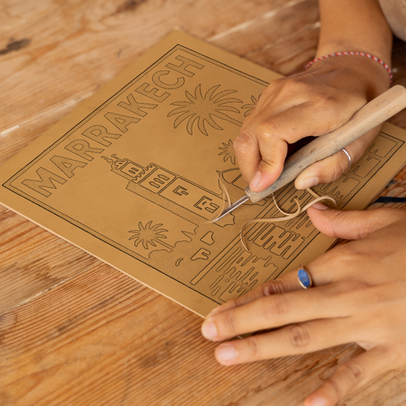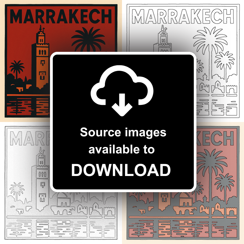 Celebrate the timeless allure of Marrakech with this stunning lino-print style artwork, part of our exclusive Travel Posters collection. Meticulously crafted to capture the essence of Morocco’s iconic city, this piece features a bold silhouette of the Koutoubia Mosque and distinctive palm trees rising elegantly above the cityscape. Rich, earthy reds and deep blacks evoke the warmth of Marrakech’s sunsets, while crisp, geometric outlines pay homage to traditional printmaking artistry. The reflection of the skyline in still waters beneath adds depth and a sense of tranquil symmetry.
