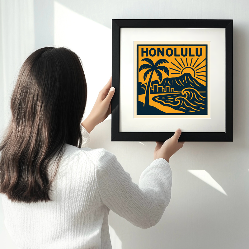 Transform your home or office with this tribute to tropical city life, or gift it to a travel lover, surfer, or art enthusiast. Immerse yourself in the sunshine and excitement of Honolulu every day.